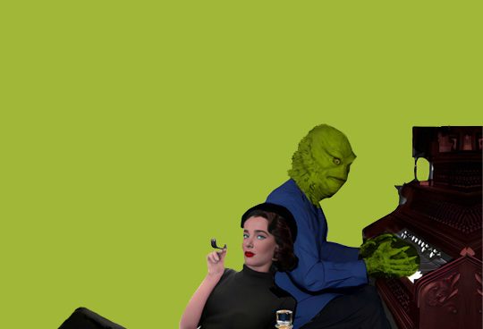 Artist credit: Drinks, Piano Creature and Girl by Rosalind Brown. (Medium: digital art collage).